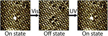 In this publication of Nanoscale, scientists explain the fabrication, surface and electronic structures of reversible photoswitches based on diarylethene embedded in a matrix of dodecanethiol on gold. The characterization was made with scanning tunneling microscopy for the analysis of the effect when the “on” state appears higher than the “off” state by several Ångstroms.